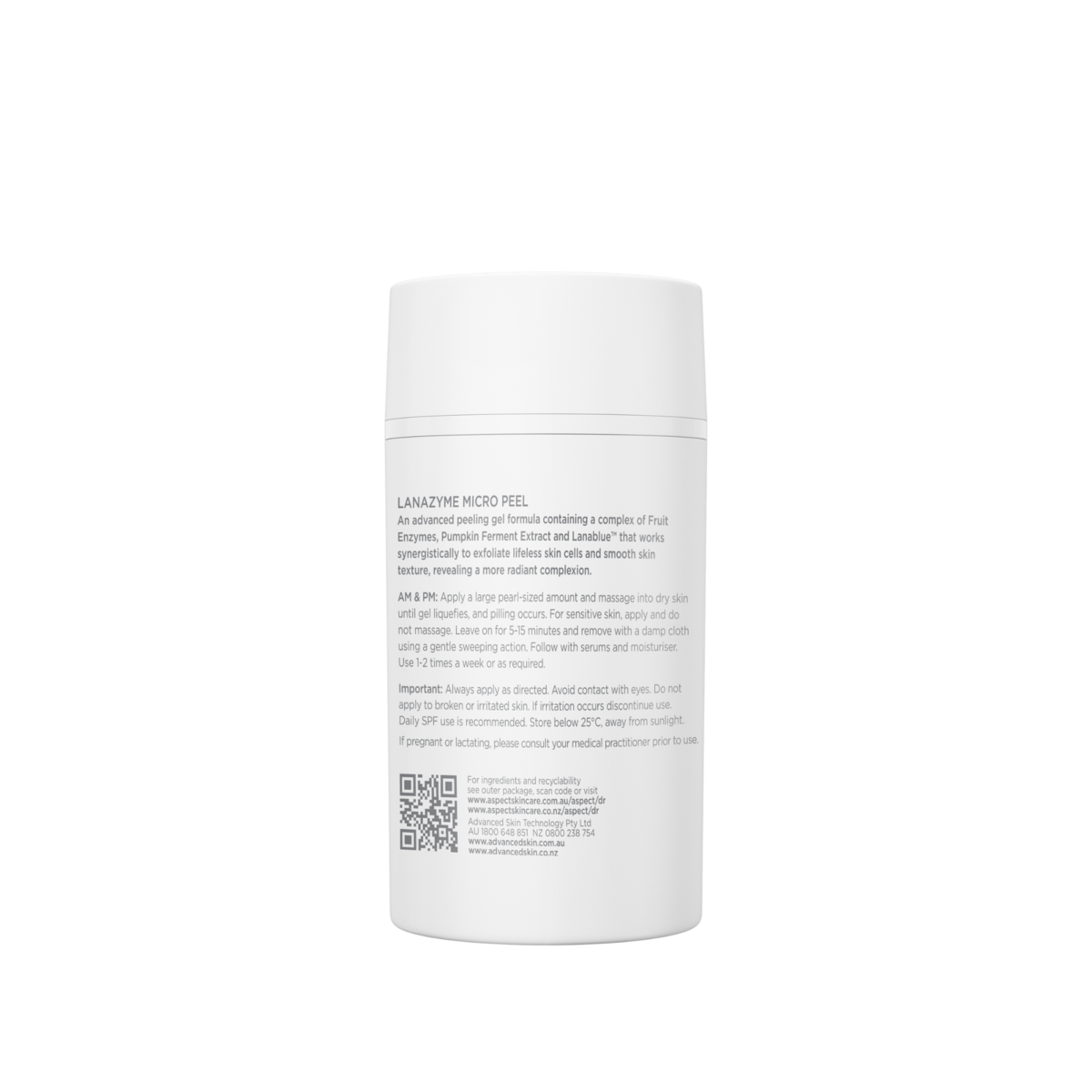 You can use Lanazyme Micro Peel in the morning or at night. Apply a generous pearl-sized amount to cleansed, dry skin and massage until the gel liquefies and you see pilling. If your skin is sensitive, just apply it without massaging. Leave it on for 5-15 minutes, then gently remove it with a damp cloth using sweeping motions. Follow up with your favourite serums and moisturiser.